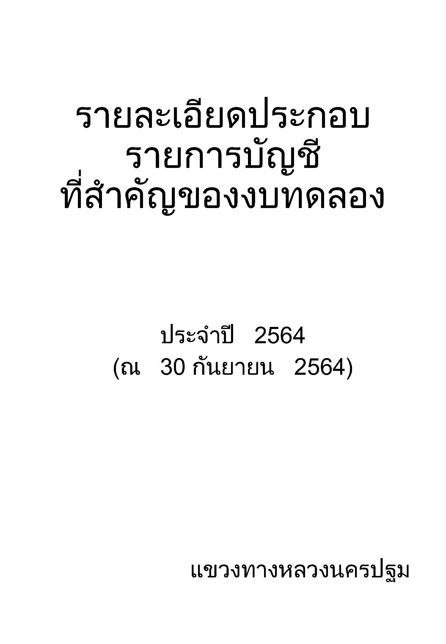 งบทดลอง ประจำเดือนกันยายน 2564 |
