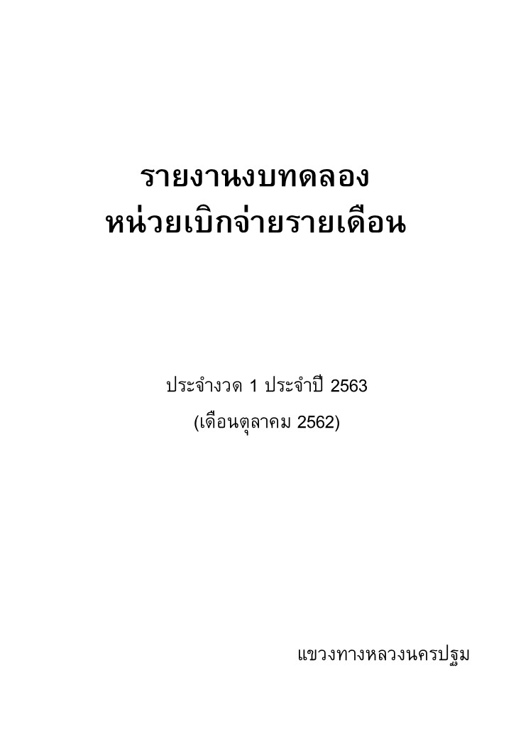 งบทดลอง ประจำเดือนตุลาคม 2562 |