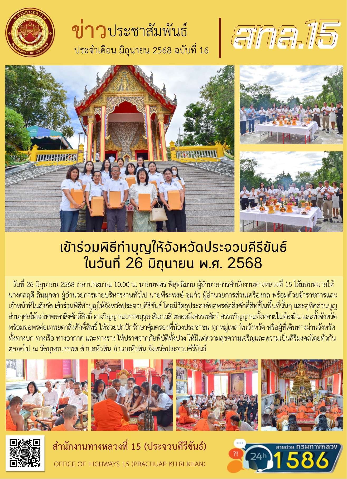 เข้าร่วมพิธีทำบุญให้จังหวัดประจวบคีรีขันธ์ ในวันที่ 26 มิถุนายน พ.ศ. 2568