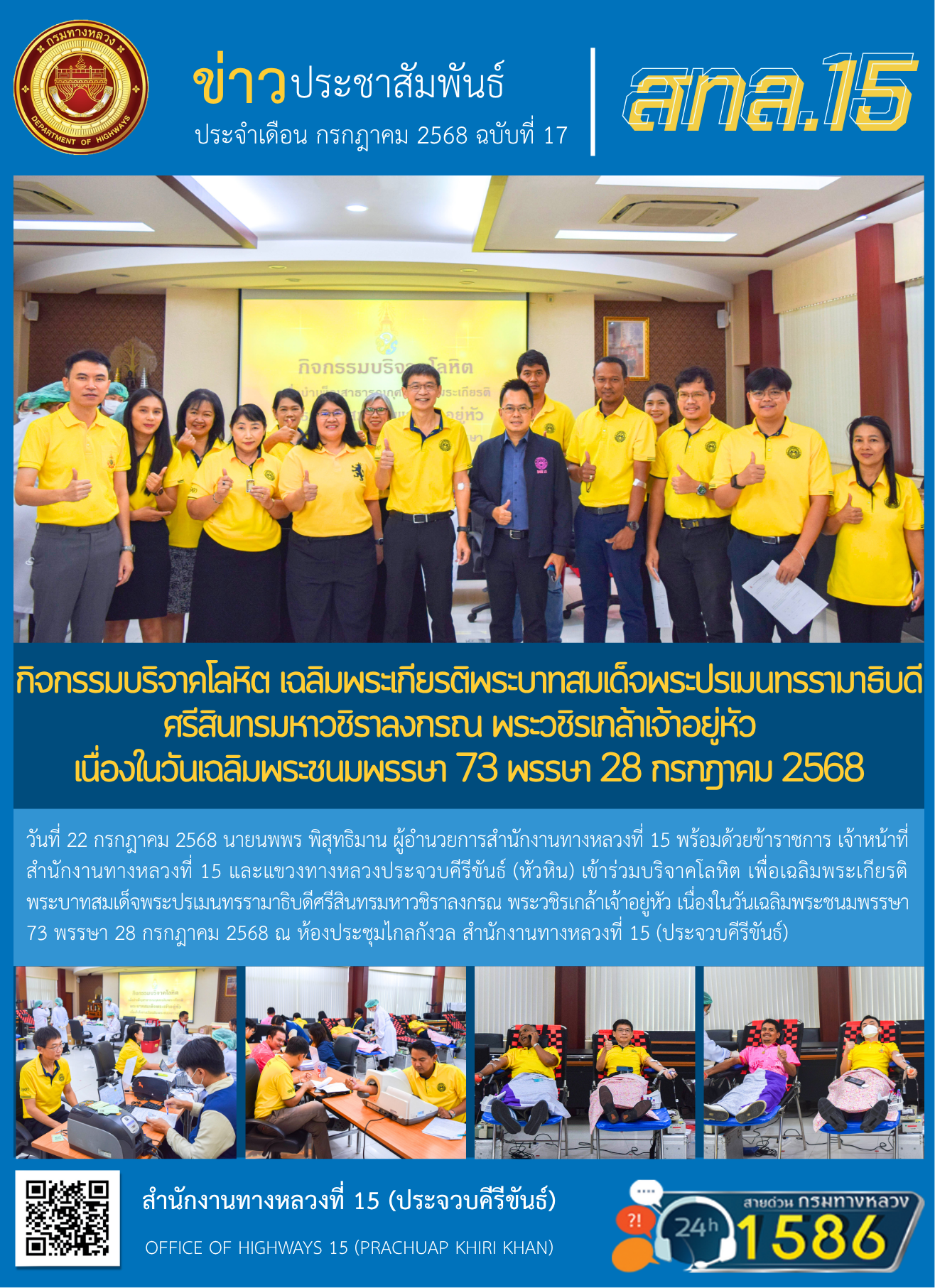 กิจกรรมบริจาคโลหิต เฉลิมพระเกียรติพระบาทสมเด็จพระปรเมนทรรามาธิบดีศรีสินทรมหาวชิราลงกรณ พระวชิรเกล้าเจ้าอยู่หัว เนื่องในวันเฉลิมพระชนมพรรษา 73 พรรษา 28 กรกฎาคม 2568