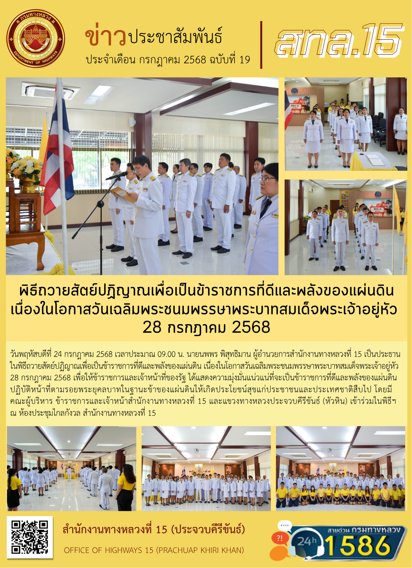 พิธีถวายสัตย์ปฏิญาณเพื่อเป็นข้าราชการที่ดีและพลังของแผ่นดิน เนื่องในโอกาสวันเฉลิมพระชนมพรรษาพระบาทสมเด็จพระเจ้าอยู่หัว 28 กรกฎาคม 2568