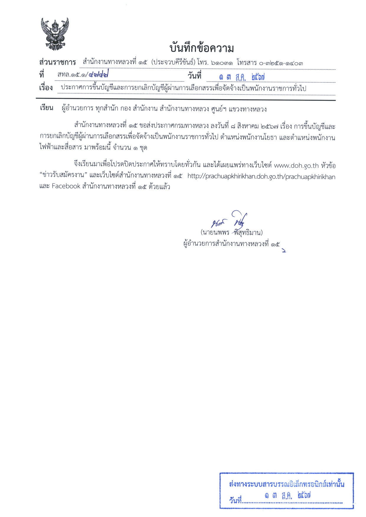 > สำนักงานทางหลวงที่ ๑๕