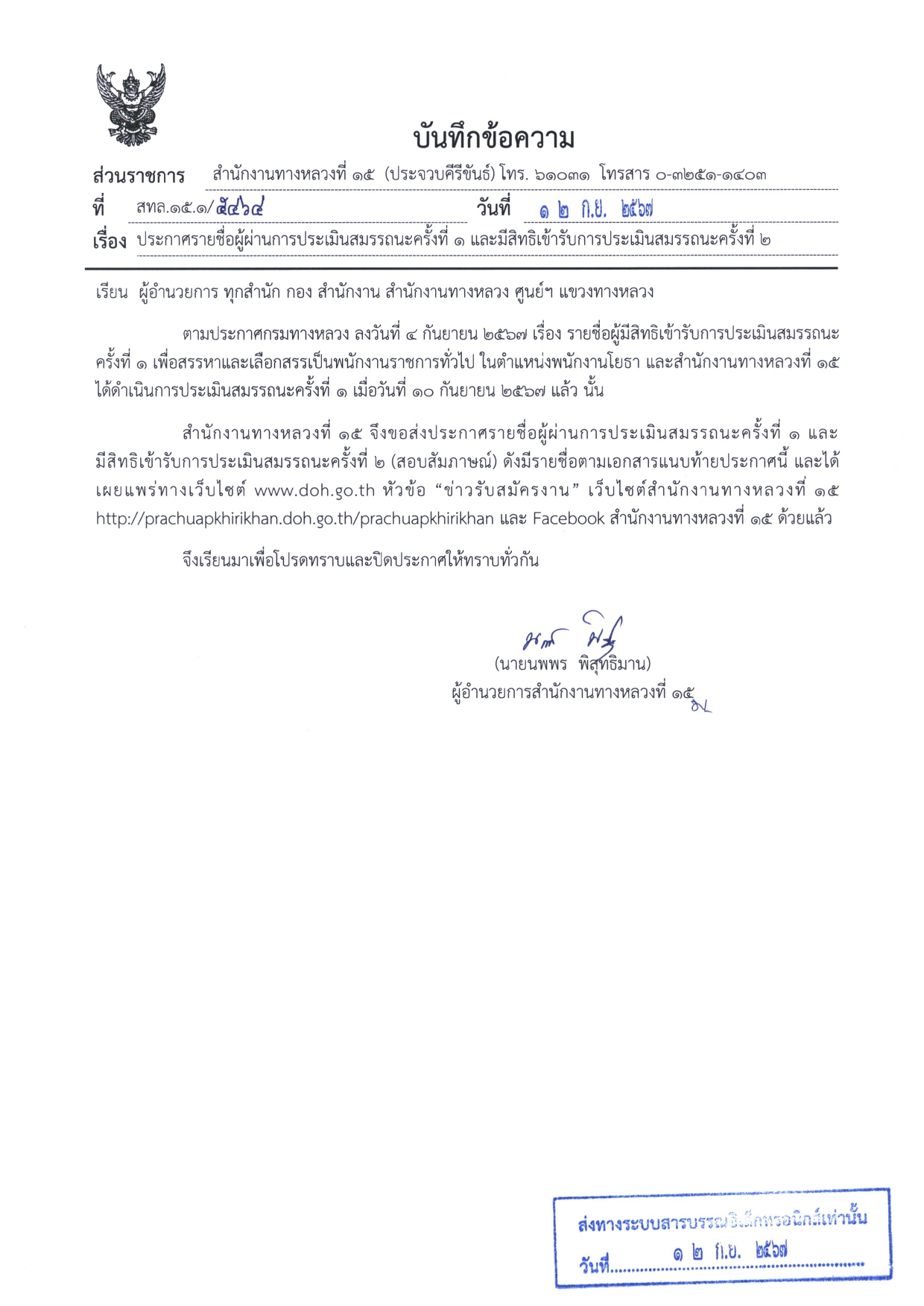 > ประกาศรายชื่อผู้ผ่านการประเมินสมรรถนะครั้ง 1 และมีสิทธิ์เข้ารับการประเมินสมรรถนะครั้ง 2
