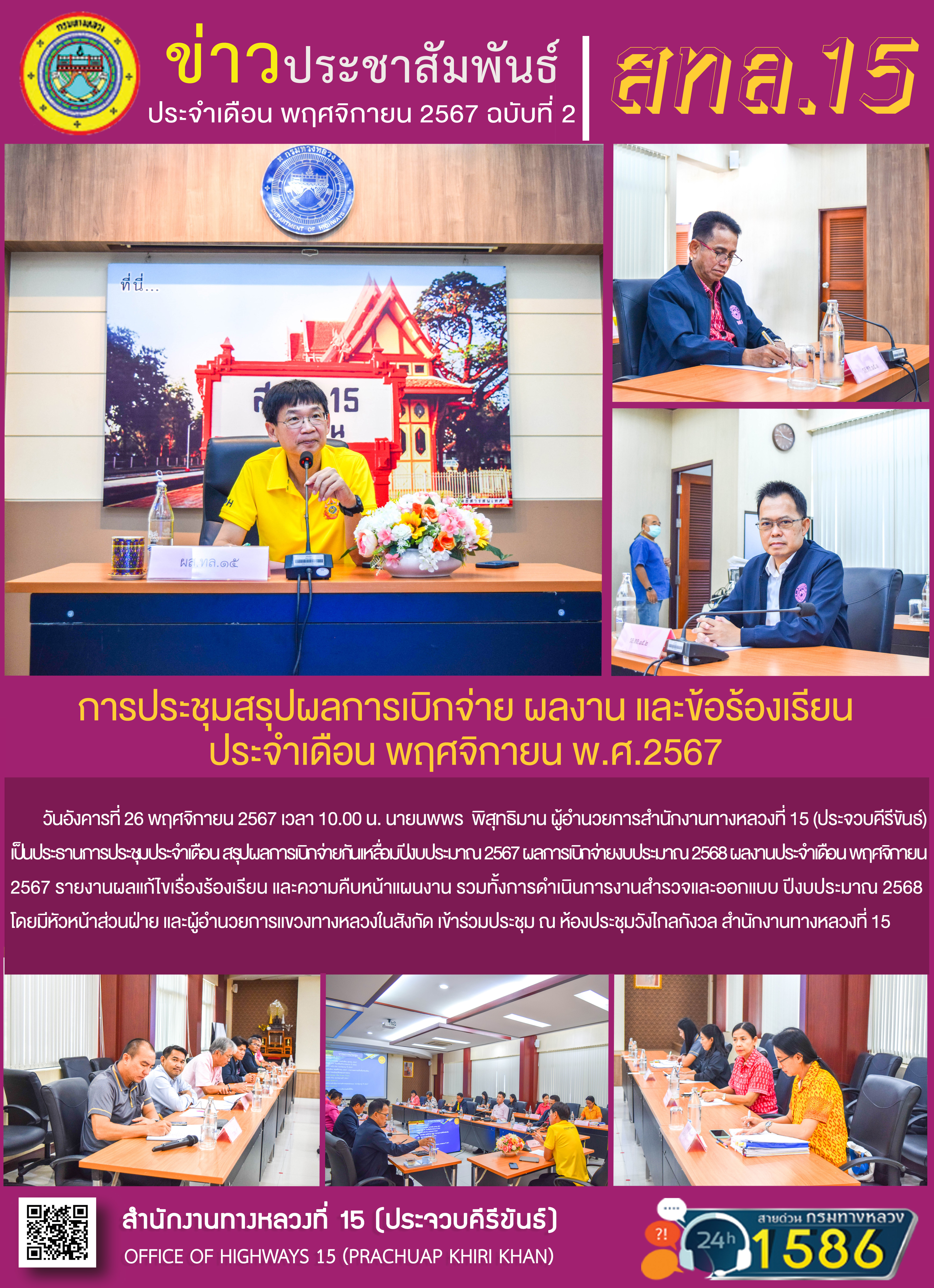 การประชุมสรุปผลการเบิกจ่าย ผลงาน และข้อร้องเรียน ประจำเดือน พฤศจิกายน พ.ศ.2567