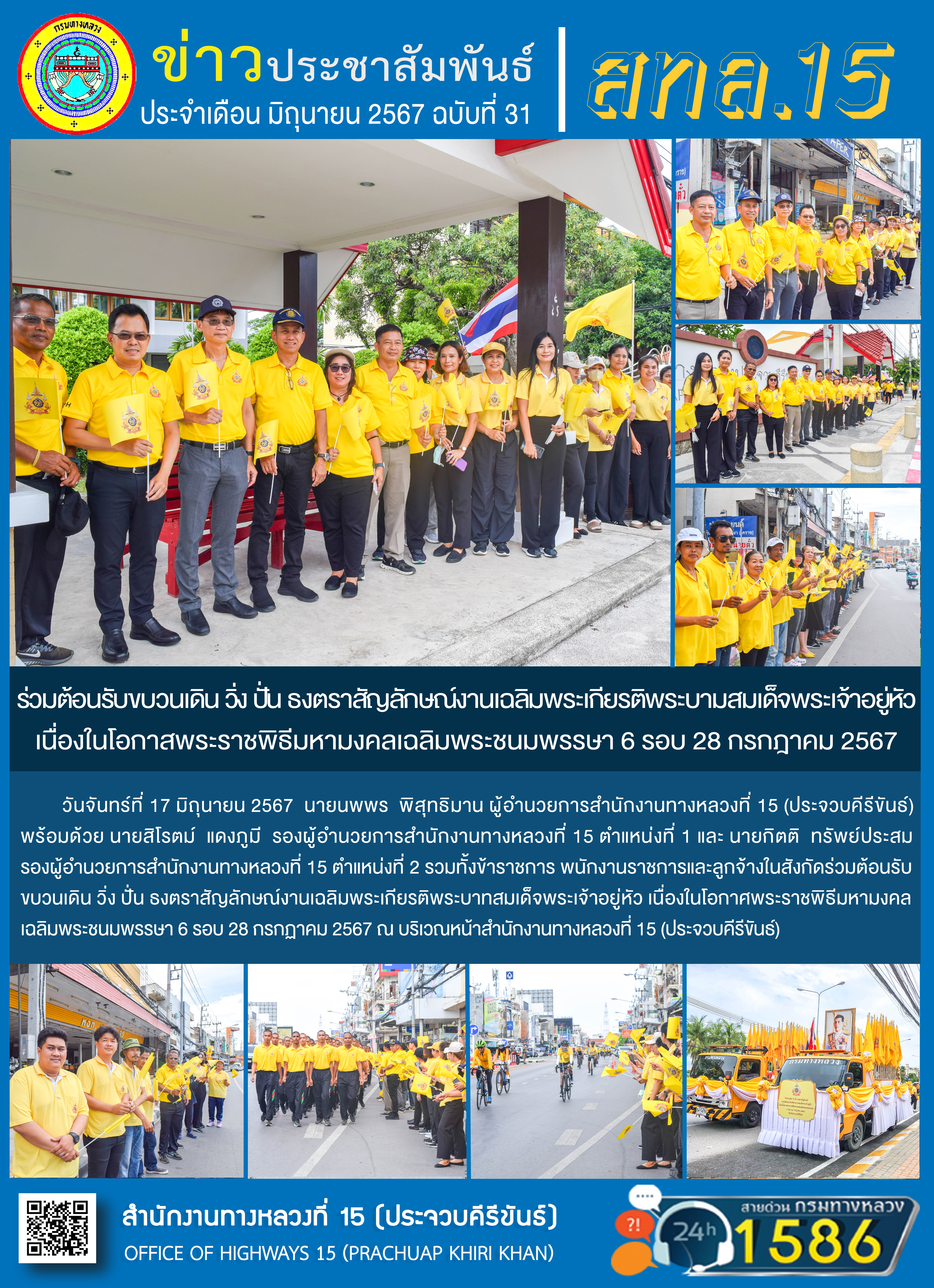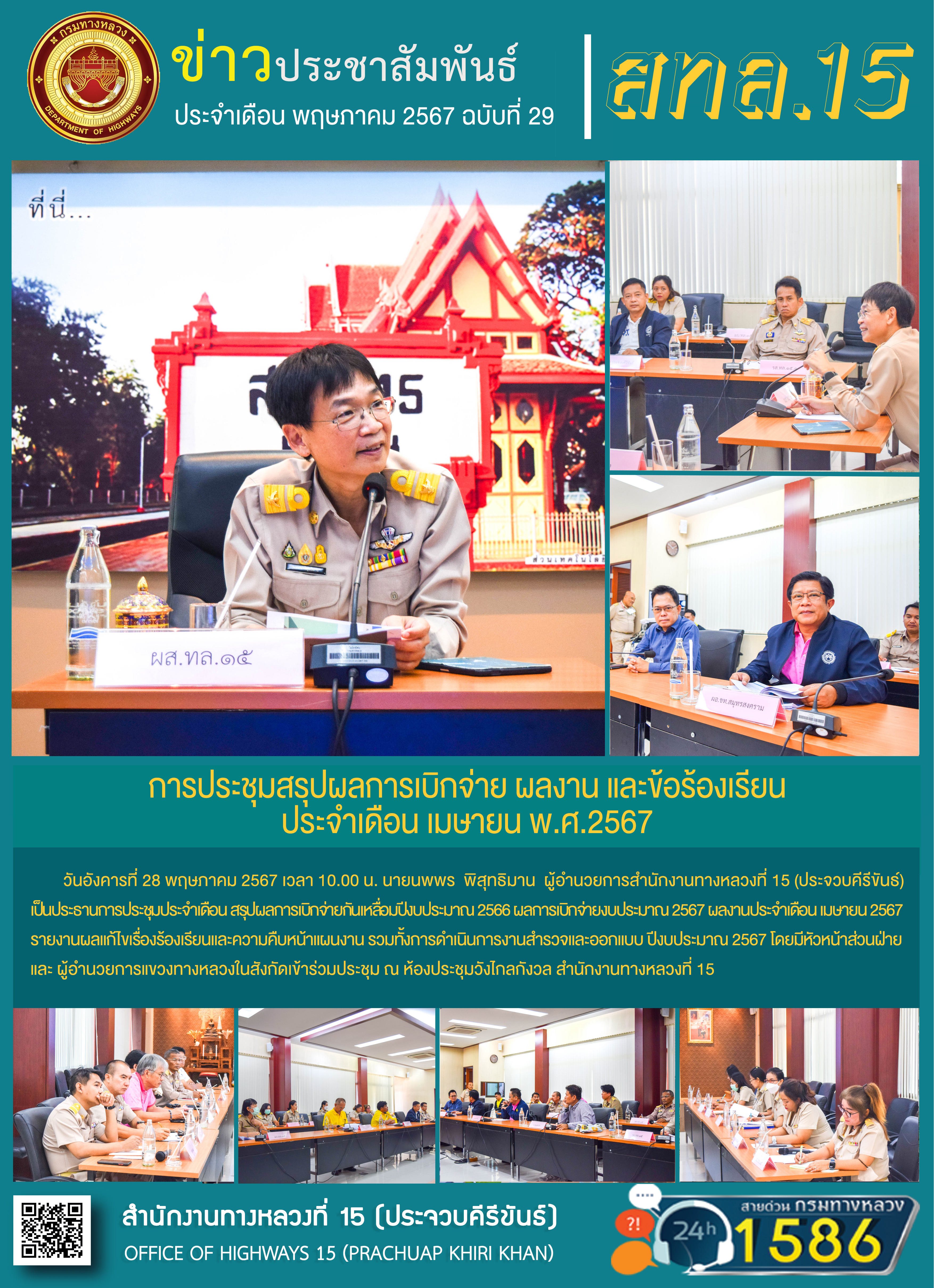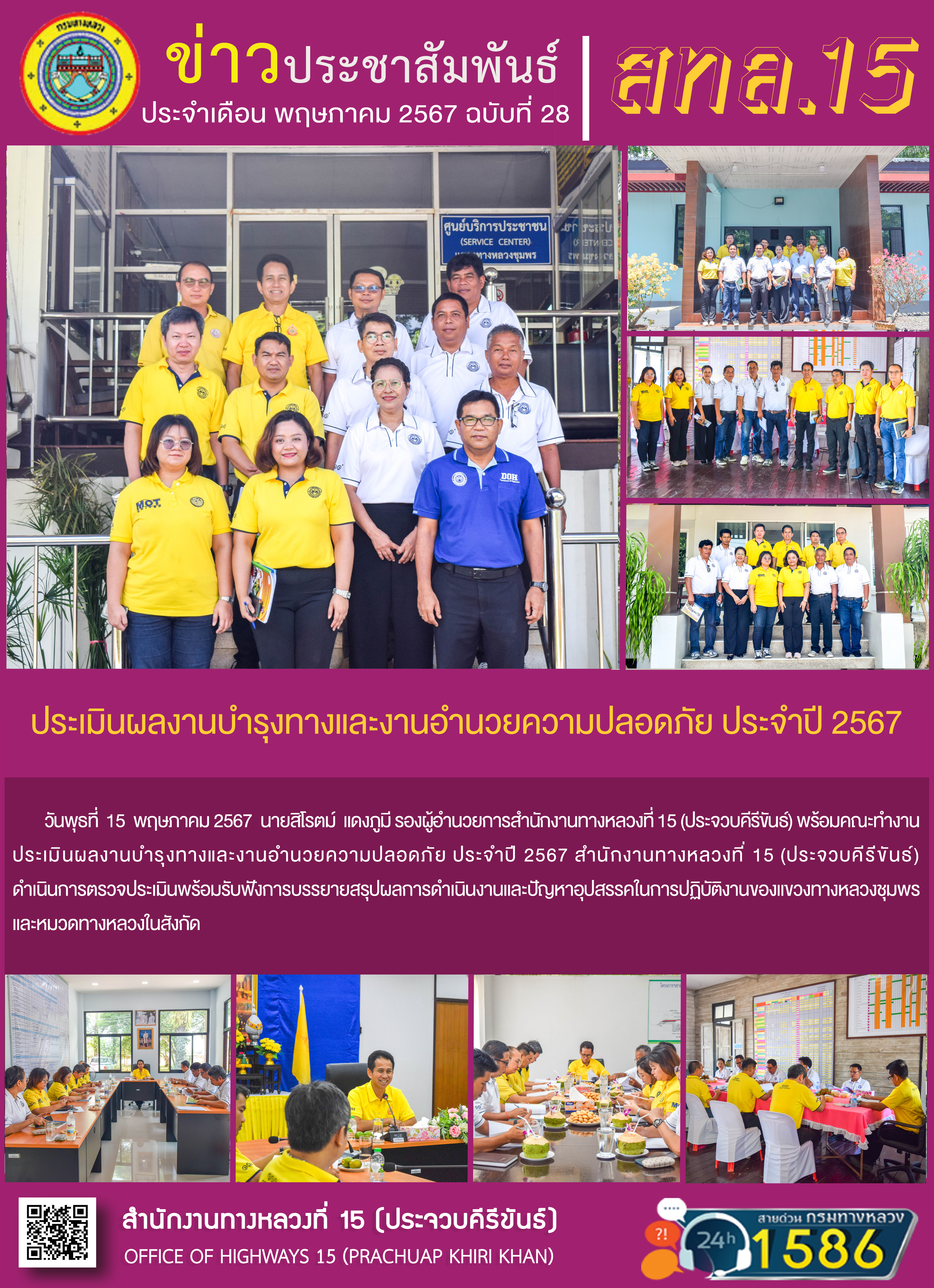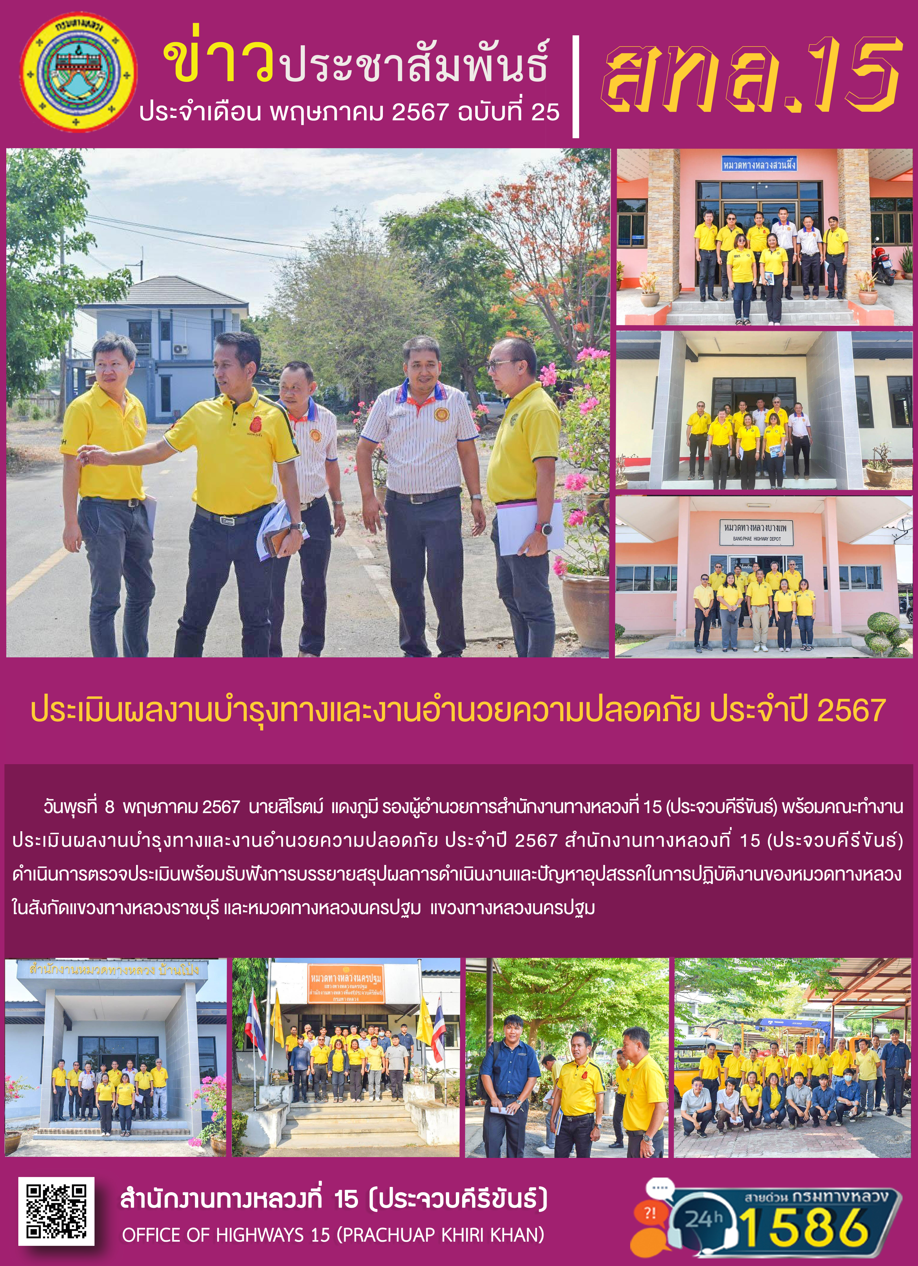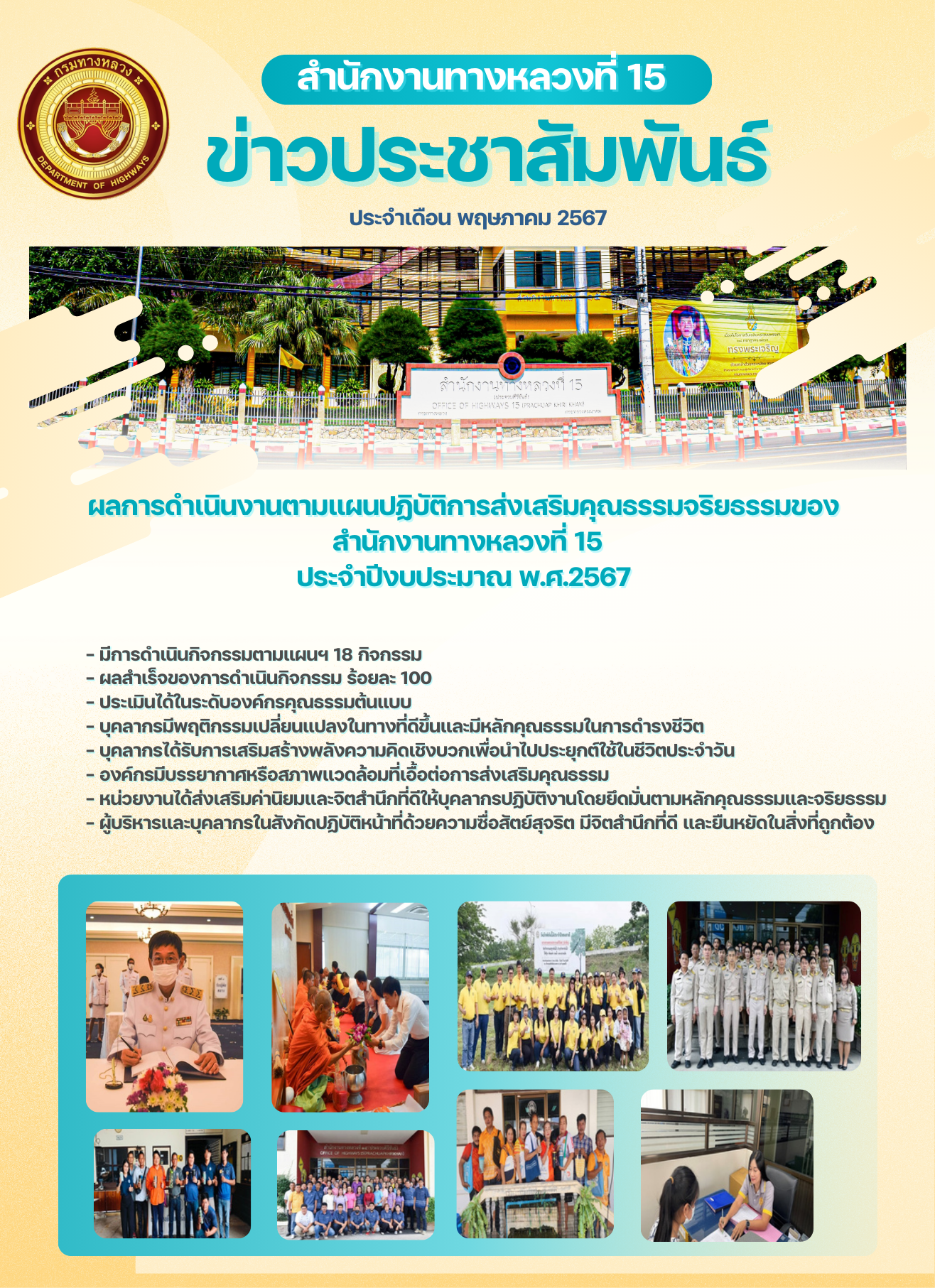 รายงานผลการดำเนินงานตามแผนปฏิบัติการส่งเสริมคุณธรรมจริยธรรมของ สำนักงานทางหลวงที่ 15 ประจำปีงบประมาณ พ.ศ.2567
