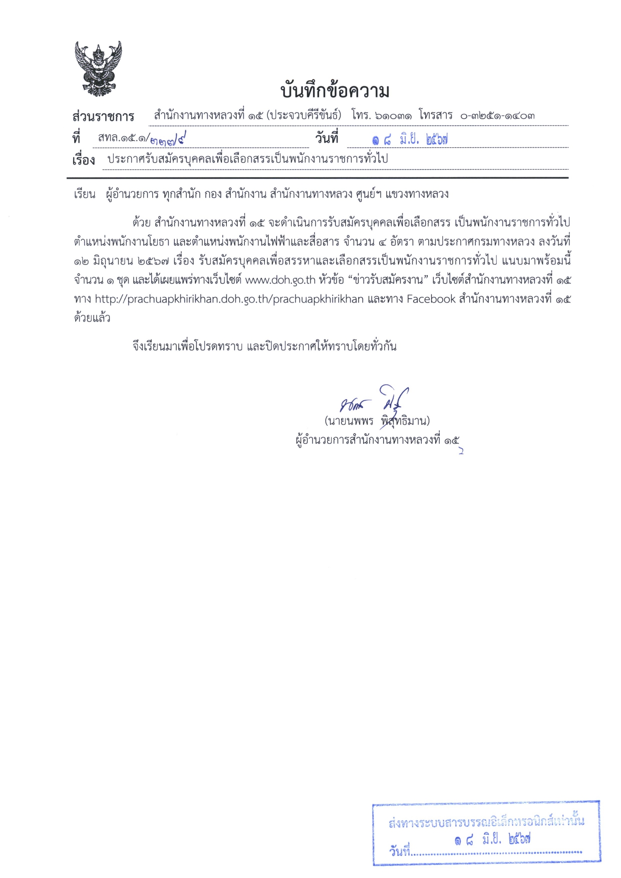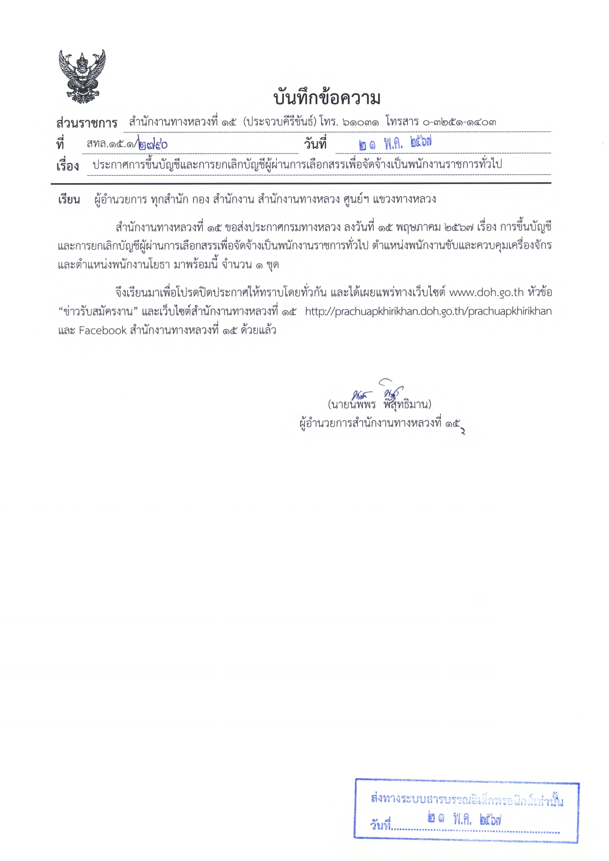 > สำนักงานทางหลวงที่ ๑๕