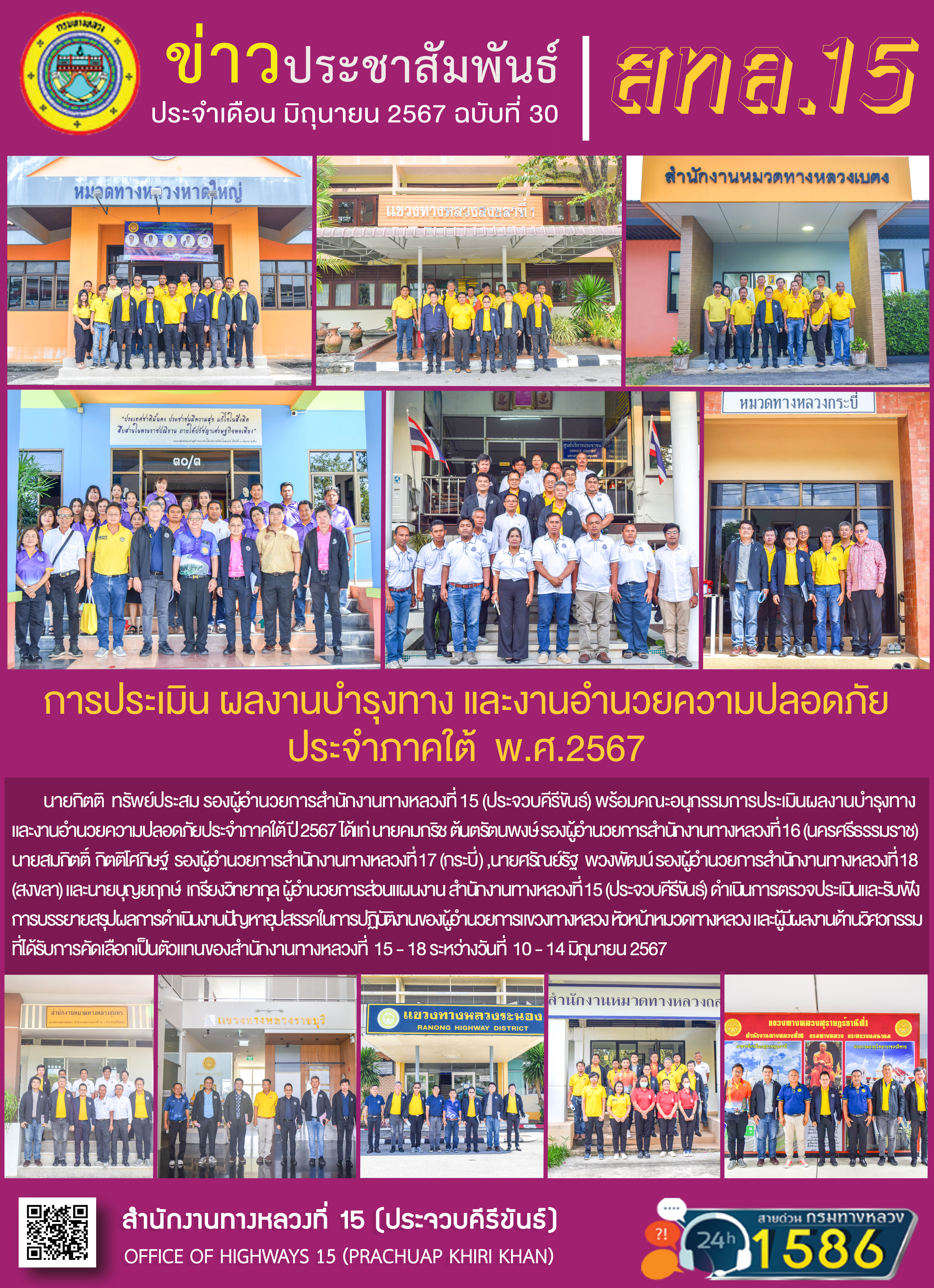 การประเมินผลงานบำรุงทาง และงานอำนวยความปลอดภัย ประจำภาคใต้ พ.ศ.2567