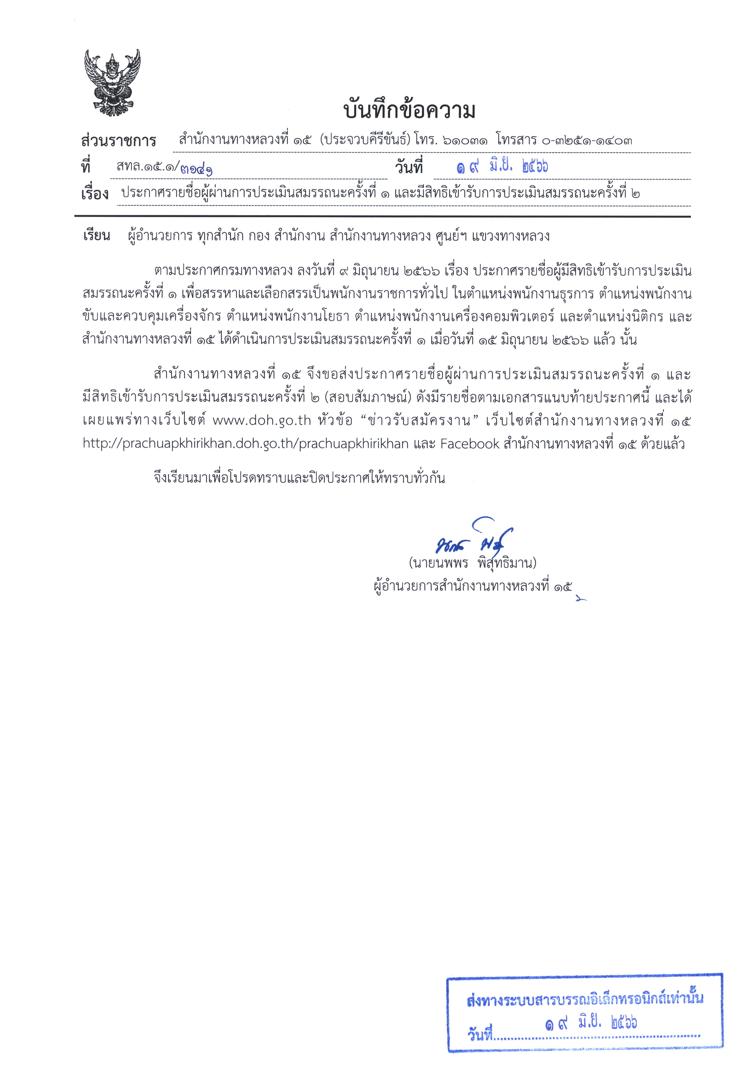 สังกัดสำนักงานทางหลวงที่ 15 (ประจวบคีรีขันธ์) จำนวน 1 อัตรา