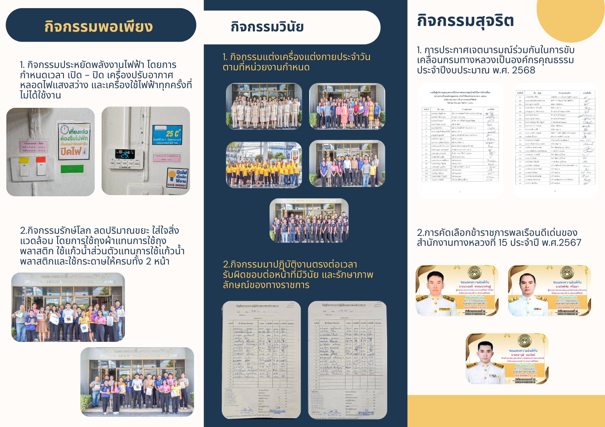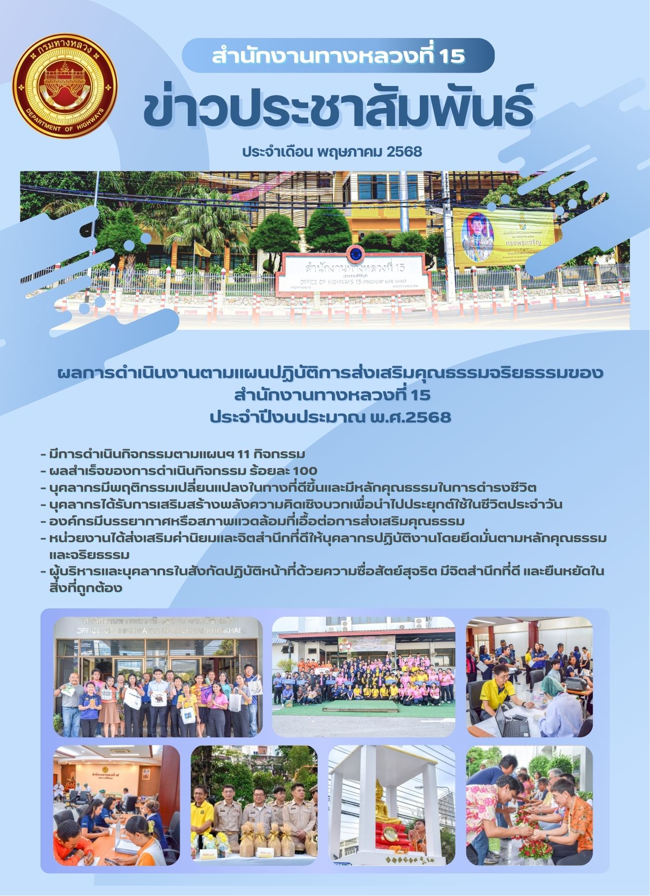 รายงานผลการดำเนินงานตามแผนปฏิบัติการส่งเสริมคุณธรรมจริยธรรมของสำนักงานทางหลวงที่ 15 ประจำปีงบประมาณ พ.ศ.2568