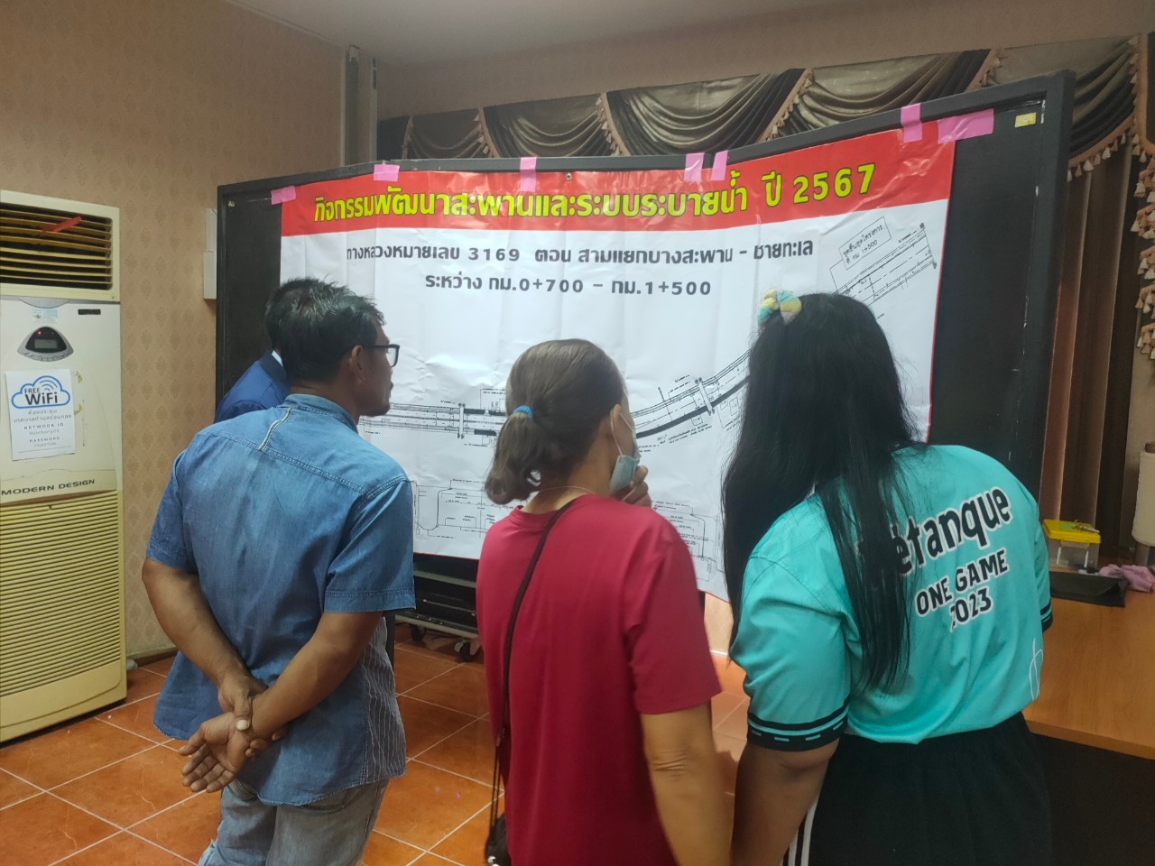 การดำเนินงานการมีส่วนร่วมของประชาชน เพื่อประชาสัมพันธ์ กิจกรรมพัฒนาสะพานและระบบระบายน้ำ ทางหลวงหมายเลข 3169 ตอน สามแยกบางสะพาน – ชายทะเล ระหว่าง กม.0+700 – กม.1+500