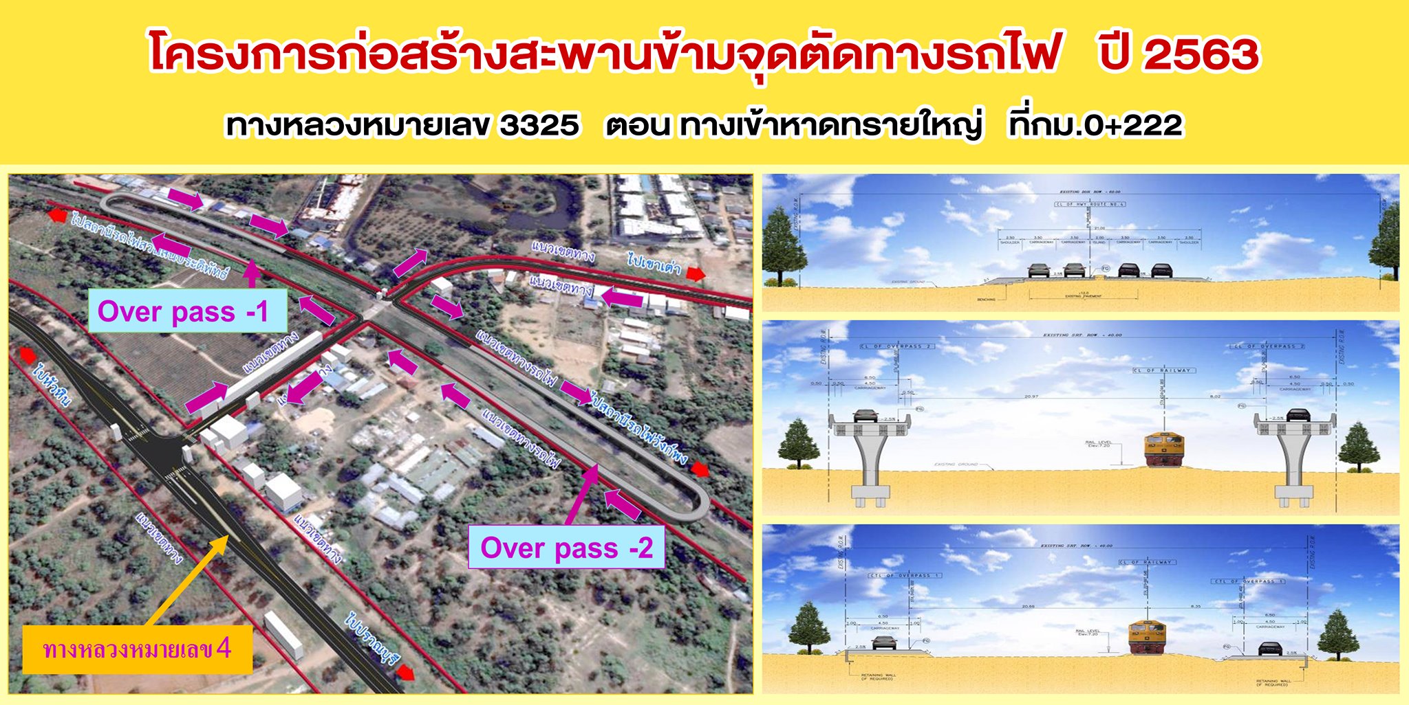 นายนรงฤทธิ์ พรหมประดิษฐ์ ผู้อำนวยการแขวงทางหลวงฯ ,นายเศรษฐ์ จันทอาด รองผู้อำนวยการแขวงทางหลวงฯ ,นายอนุสรณ์ ผาใต้ หัวหน้าหมวดทางหลวงหัวหิน ,นายชัชชัย พงษ์พิทักษ์ ผู้แทนสำนักก่อสร้างสะพาน ,ผู้แทนสำนักสำรวจและออกแบบ ได้ดำเนินการจัดโครงการ การมีส่วนร่วมของประชาชน สำหรับโครงการก่อสร้างสะพานข้ามจุดตัดทางรถไฟ ทางหลวงหมายเลข 3325 ตอน ทางเข้าหาดทรายใหญ่ ที่กม.0+222 ซึ่งได้เชิญผู้นำชุมชน ,ผู้แทนหน่วยงานรัฐและเอกชน ,ประชาชนในพื้นที่ เข้าร่วมรับฟังรูปแบบและการดำเนินงานก่อสร้าง ดังกล่าว โดยมี นายธนนท์ พรรพีภาส นายอำเภอหัวหิน เป็นประธาน ณ อาคารอเนกประสงค์ โรงเรียนเทศบาลบ้านเขาเต่า ต.หนองแก อ.หัวหิน จ.ประจวบคีรีขันธ์