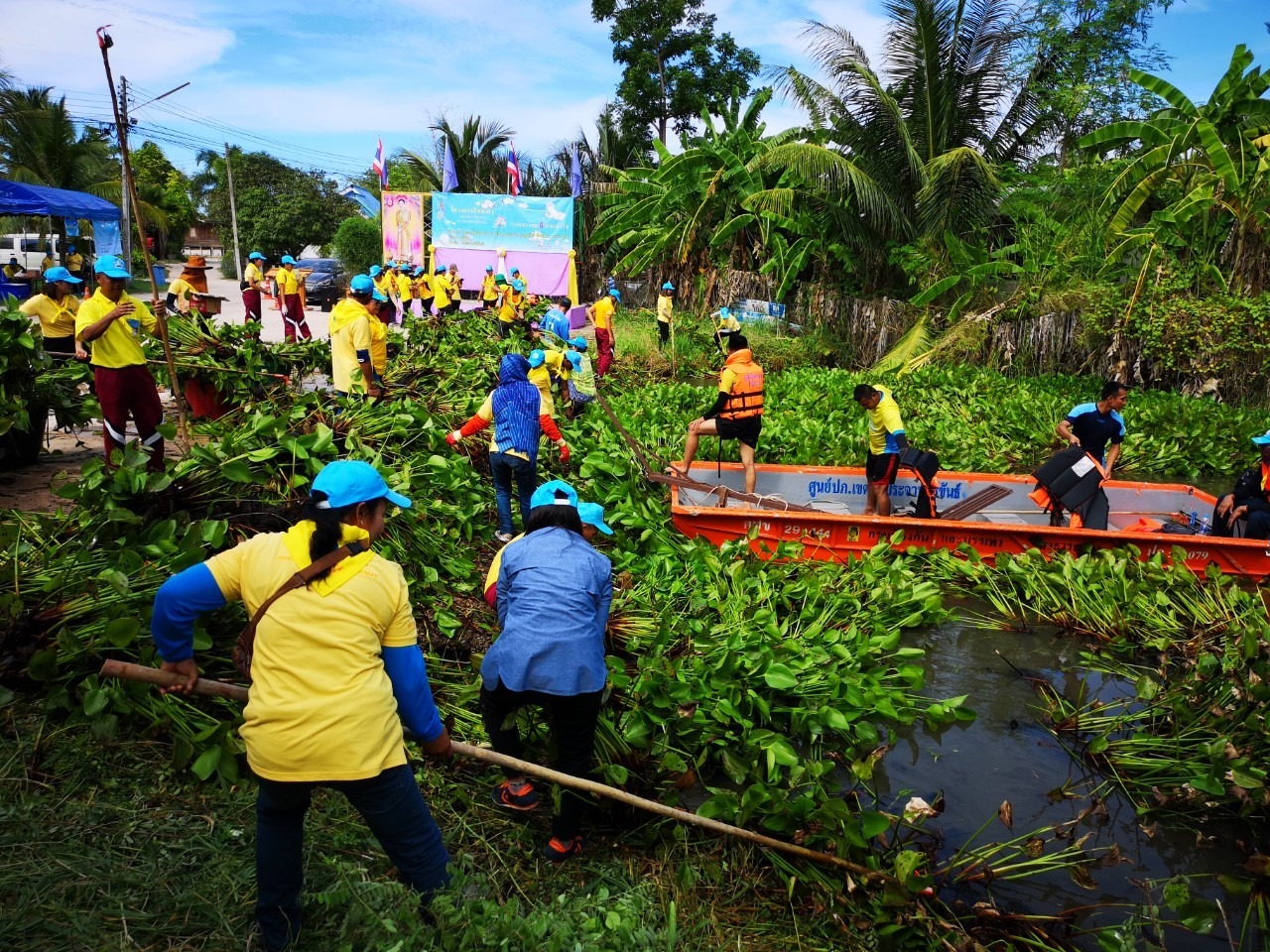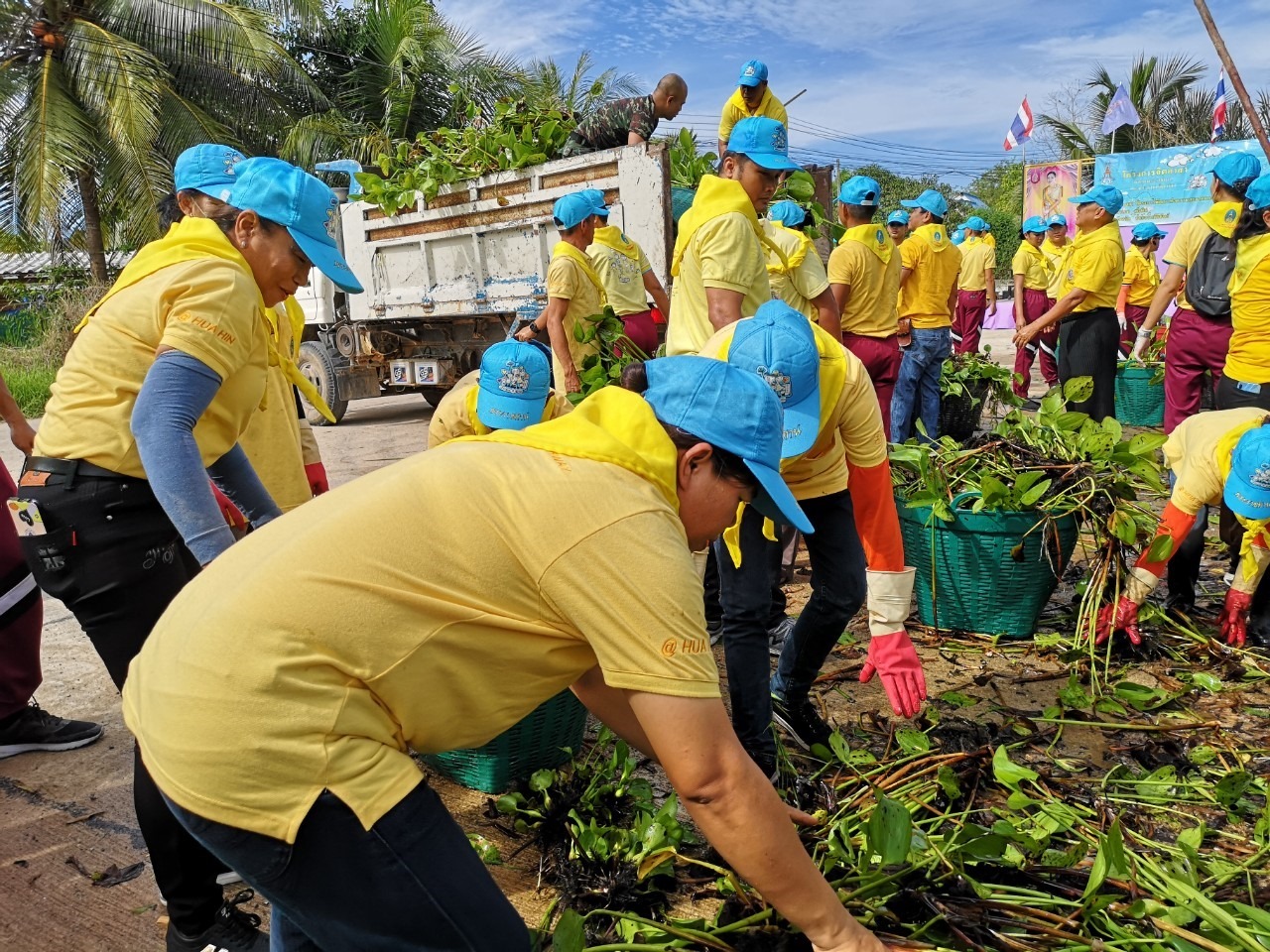 แขวงทางหลวงประจวบคีรีขันธ์(หัวหิน) จัดชุดเจ้าหน้าที่ในสังกัดร่วมกิจกรรม “จิตอาสาพัฒนา คู คลอง” ตามโครงการจิตอาสา “เราทำความดี ด้วยหัวใจ”เนื่องในวันเฉลิมพระชนมพรรษาสมเด็จพระนางเจ้าฯ พระบรมราชินี ณ สระกักเก็บน้ำ สาธารณประโยชน์ หมู่ที่ 1 บ้านหนองพรานพุก ต.ทับใต้ อ.หัวหิน จ.ประจวบคีรีขันธ์
